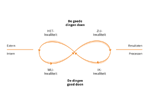 Alhoewel we maar kleine stappen zetten hebben we nu al meer bereikt dan wat ze in voorgaande jaren hebben gedaan. Een voorbeeld daarvan is het veranderen van het aanbod en verwerkingsinstrument van het rekenonderwijs. Dit schooljaar hebben we het doel gesteld dat we de meeste kinderen richting het 1S niveau wouden krijgen. We kwamen al gauw tot de conclusie dat we het met de huidige manier van lesgeven (methode afhankelijkheid) niet voor elkaar zouden krijgen. Het team is samen tot een nieuwe manier van aanbod gekomen dat wel werkt voor onze populatie. Dit hebben ze bereikt door te experimenteren met verschillende vormen van aanbod. Daar heb ik de aanzet toe gegeven door steeds de juiste vragen te stellen. Daarnaast is het van belang om steeds te evalueren en te kijken of we de juisten dingen aan het doen zijn in het voordeel van het onderwijs. (Lieskamp & Vink, Vertrouwen, verbinden en vakmanschap in het onderwijs , 2019). Daarvoor gebruiken we de Leminiscaat van kwaliteitsbewustzijn.