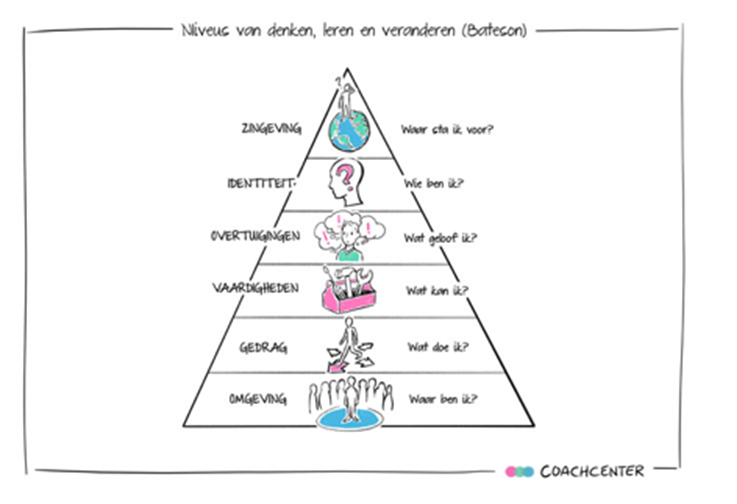 In jaar 1 van basis bekwaam heb ik de niveaus van denken, leren en veranderen van Bateson (1979) gebruikt om mijn ontwikkeling in kaart te brengen.