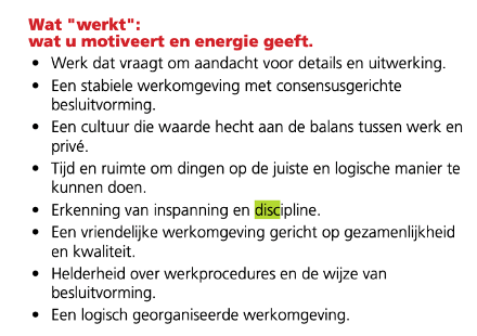 Mijn DISC is een goede omschrijving van waar ik goed in ben waar ik niet zo goed tegen kan. Ik heb geleerd dit afgelopen jaar om goed te relativeren. Het aapje weer terug te plaatsen waar het hoort.